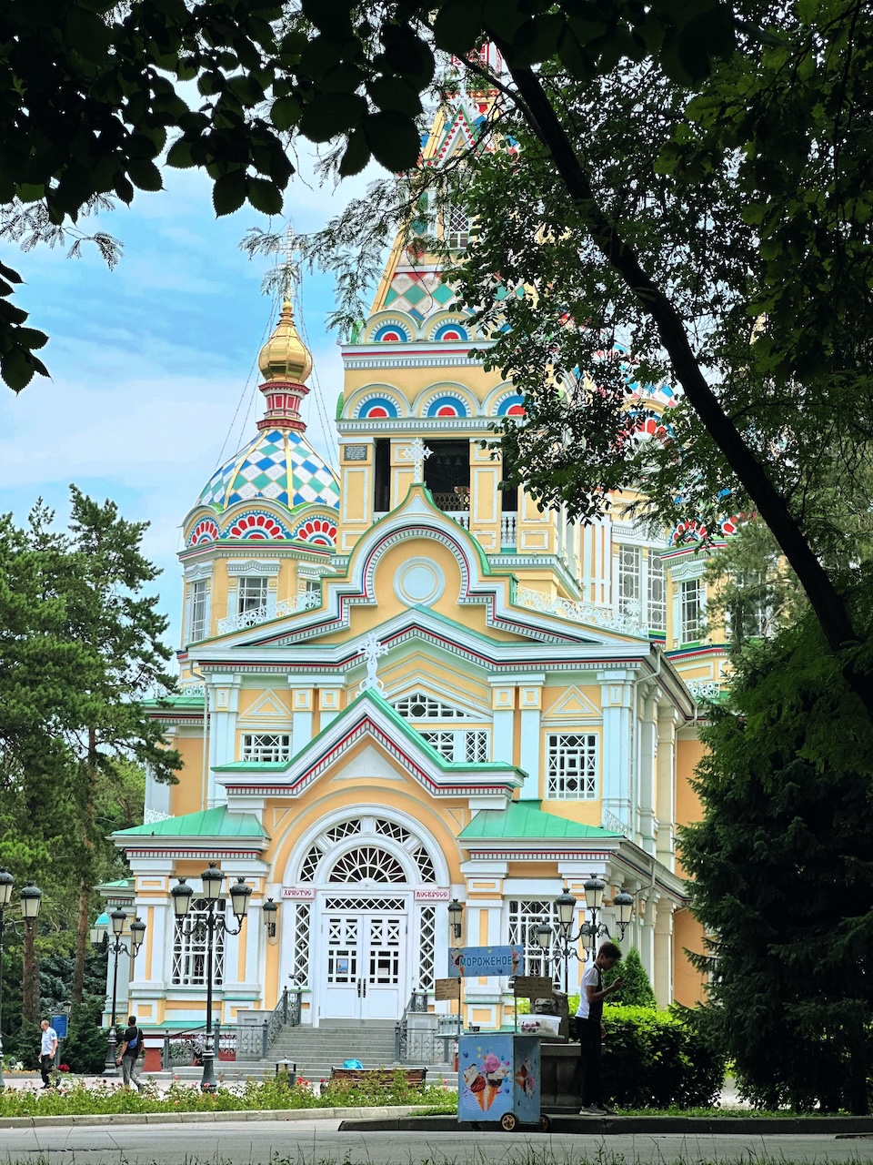 In the heart of Panfilov Park, Almaty, stands a church that feels straight out of a fairy tale